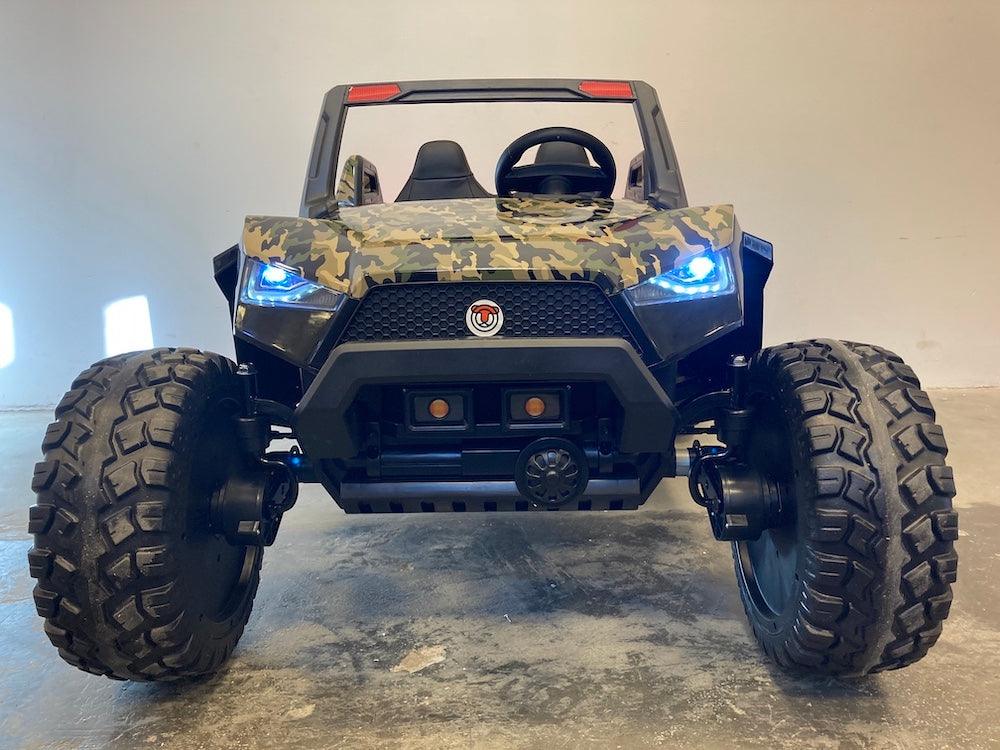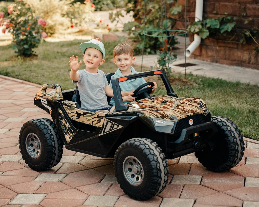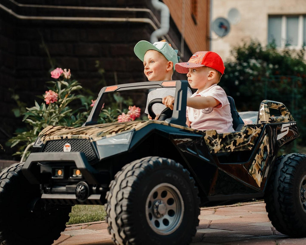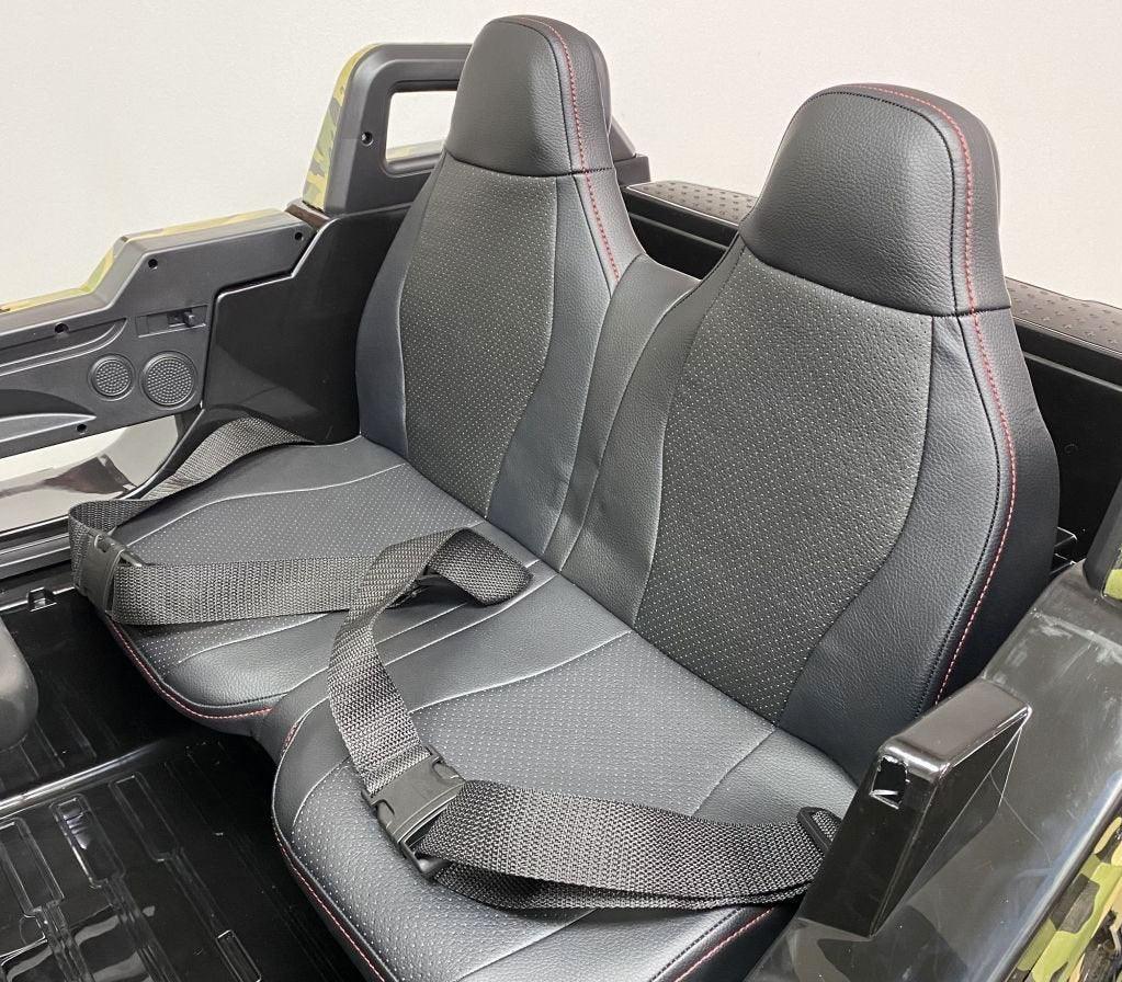 Assentos Ajustáveis para 2 Lugares: Este veículo elétrico acomoda até 2 crianças, com assentos ajustáveis que garantem conforto e adaptabilidade ao tamanho dos pequenos aventureiros.