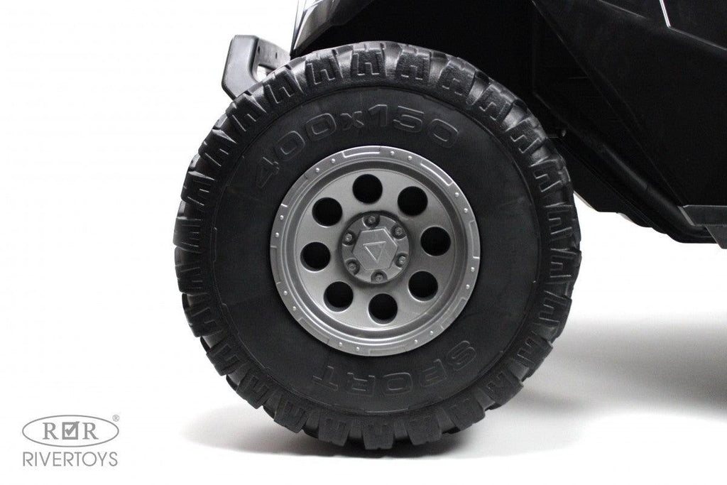 Rodas EVA Antideslizantes: As rodas em EVA, grandes e robustas, são projetadas para proporcionar um grip imbatível, permitindo que o Jeep enfrente terrenos inclinados, gramados e trilhas desafiadoras.