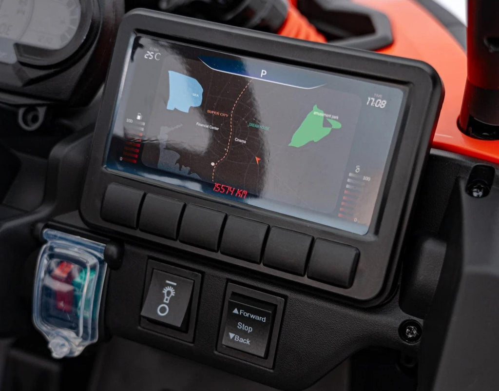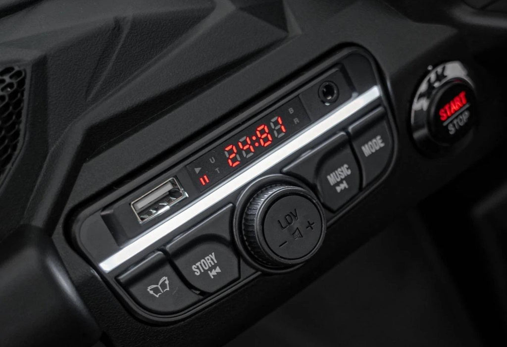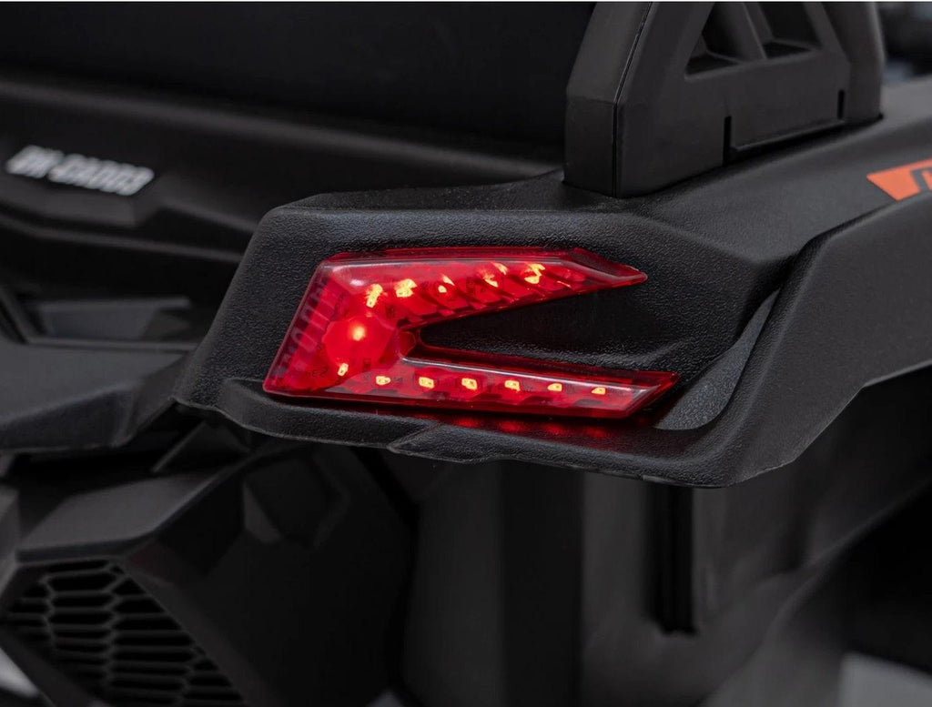 Com o ATV Can-Am Maverick, a diversão nunca acaba! As luzes LED dianteiras e traseiras dão um toque moderno e estiloso, além de iluminar o caminho para aventuras tanto de dia quanto à noite. Para tornar as brincadeiras ainda mais emocionantes, o painel de áudio integrado vem com rádio FM, MP3, USB, AUX e Bluetooth. Basta conectar o celular ou tablet e curtir as músicas favoritas enquanto acelera!
