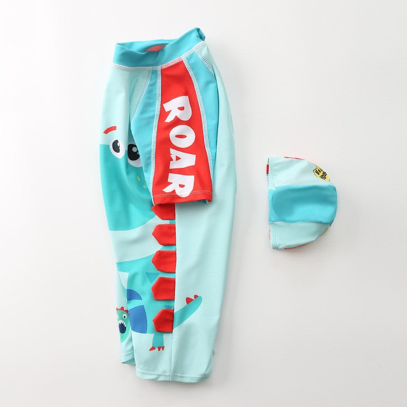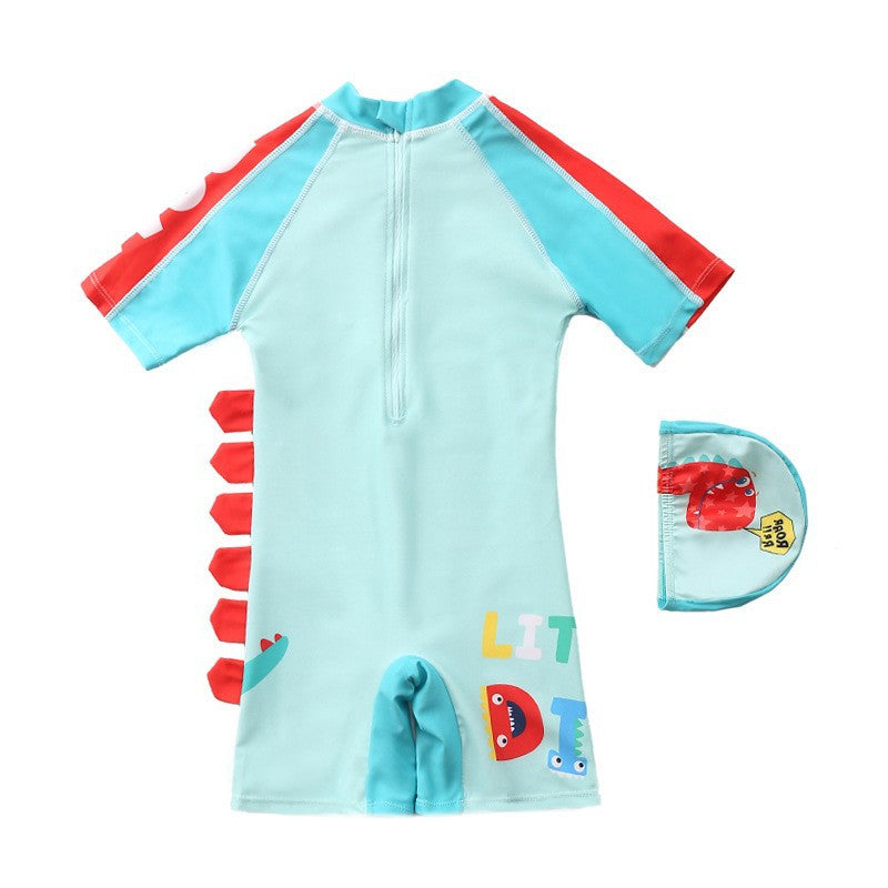 Macaquinho de Praia Infantil Manga Curta Dino Azul Claro a combinação perfeita de proteção e fofura para os momentos de praia e piscina. Com um macaquinho charmoso e uma touca fofa, seu pequeno estará pronto para se divertir com segurança sob o sol!