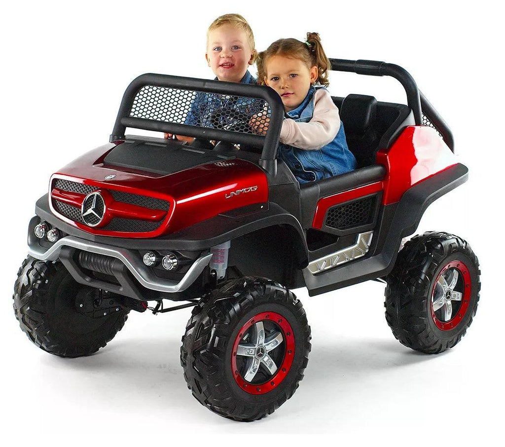 O Jeep Unimong é um veículo para até 2 crianças, com cinto de segurança e dimensões de 130 cm (C) x 85 cm (A) x 84 cm (L) na cor Vermelho e Azul. Equipado com motores de 4 x 40W, alcança até 7 Km/h. Utiliza uma bateria de 12V, com carregamento de 8 a 10 horas e tempo de uso de 1 a 1,5 horas. Recomendado para crianças de 2 a 7 anos, suporta até 50 kg.