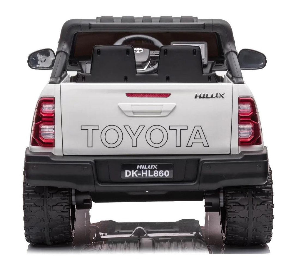 Com portas funcionais, espelhos retrovisores dobráveis, luzes LED nos faróis e lanternas traseiras, o Toyota Hilux 860 24V oferece um design realista que encanta tanto crianças quanto adultos.