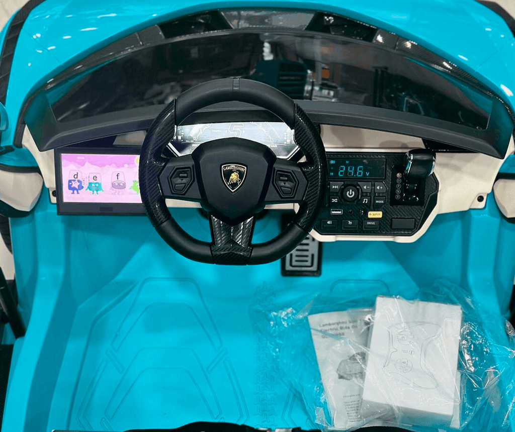 Com luzes LED dianteiras e traseiras, o Lamborghini SIAN ganha um toque de realismo, tornando o carro ainda mais emocionante. O painel de áudio, com display colorido, oferece uma experiência musical única, com opções de melodias pré-gravadas e conectividade via MP3, USB, AUX e Bluetooth para tocar as músicas favoritas enquanto acelera.